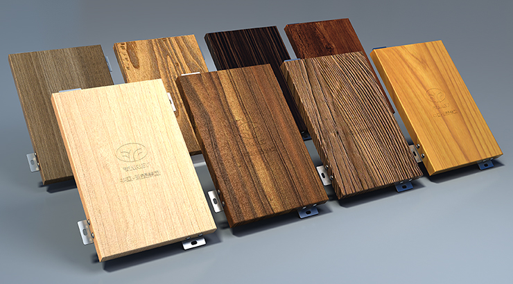 · 鋁單板經(jīng)木紋轉(zhuǎn)印后,產(chǎn)品表面有很好的仿木紋處理效果,而且經(jīng)過(guò)處理后,產(chǎn)品表面的耐曬、耐磨和耐腐蝕性增強(qiáng)